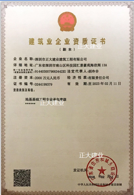 《地基基礎(chǔ)工程專業(yè)承包一級》資質(zhì)的獲得,表明公司地基基礎(chǔ)施工實(shí)力在建筑施工領(lǐng)域中具備較大的躍升,為公司進(jìn)一步做優(yōu)做強(qiáng)提供重要的支撐。